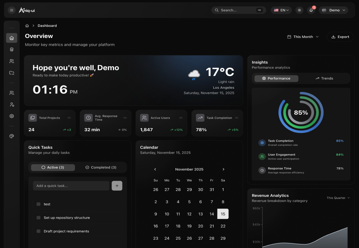 Perfect for SaaS platforms, CRM/ERP systems, AI-enabled dashboards, and internal admin panels.